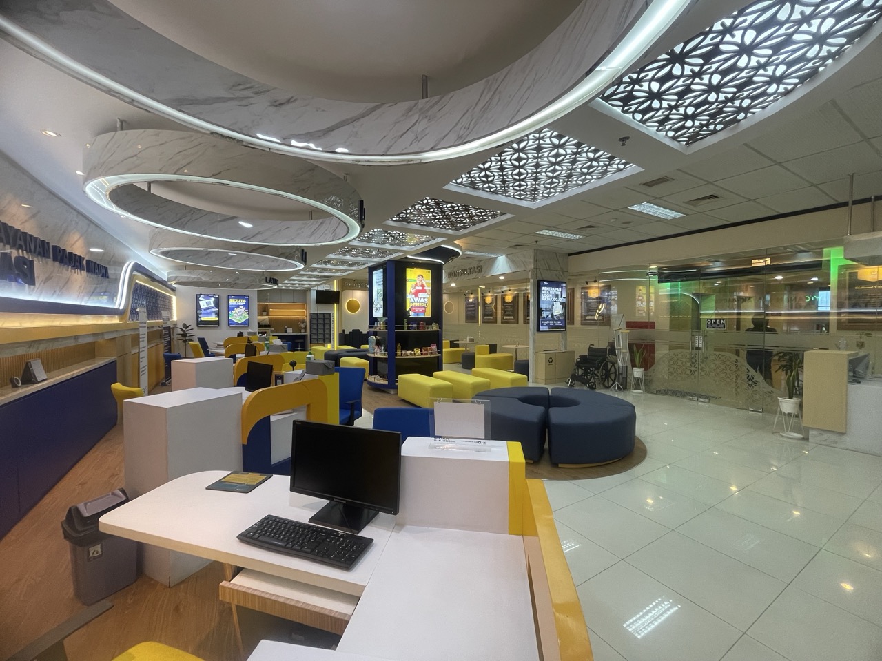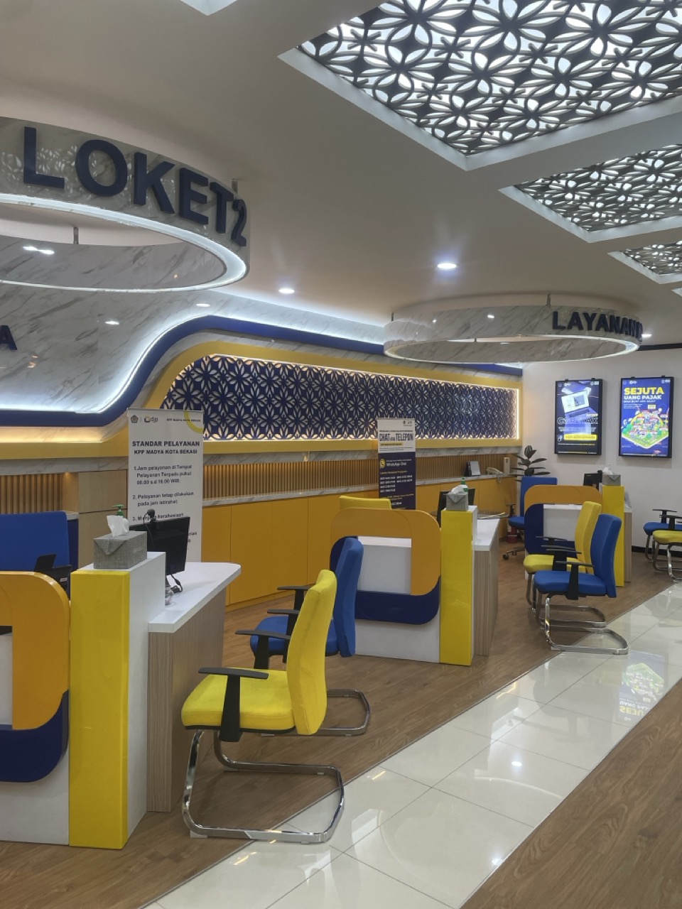 Kami melakukan renovasi sipil dan pengadaan furniture pada area kantor ini untuk meningkatkan kenyamanan pelayanan publik. Layanan kami mencakup transformasi interior, sistem elektrikal, hingga penataan ruang tunggu yang modern dan ergonomis.